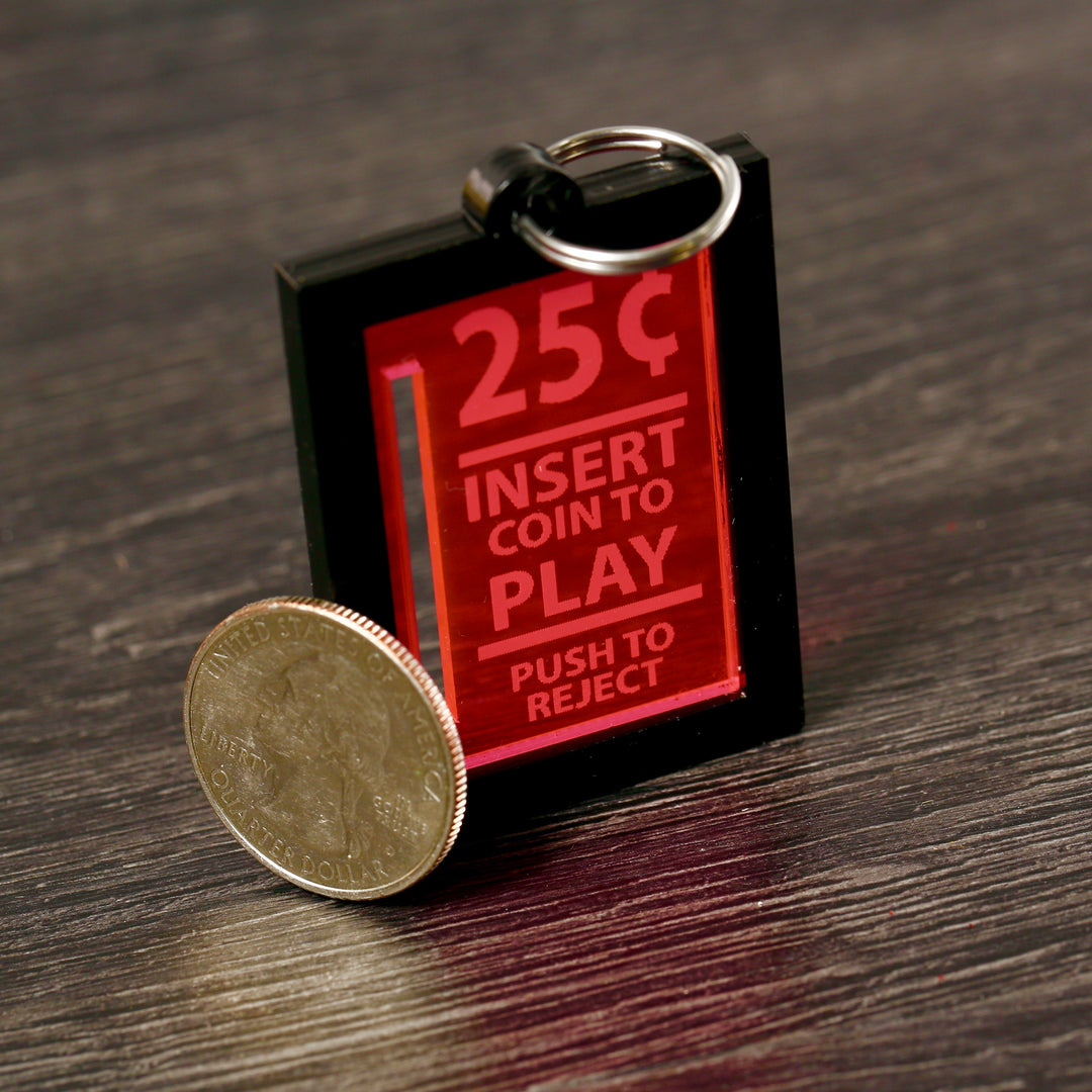 Retro Arcade Keychain - Insert Coin UV Reactive Pendant | Black Light Glow Accessory