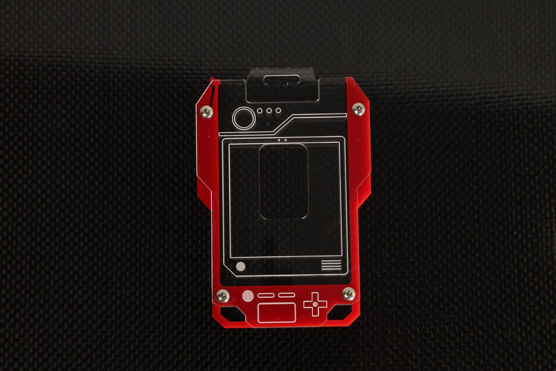 This futuristic badge case features clear acrylic outer layers with a striking black and yellow middle layer, assembled securely with hex screws for lasting strength. Whether you're attending a convention or enhancing your daily techwear setup, this Pokedex style ID case stands out as a unique Pokemon cosplay accessory that blends practicality with eye-catching design.