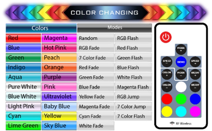 - Wireless LED controller enables seamless switching between colors and modes without hassle