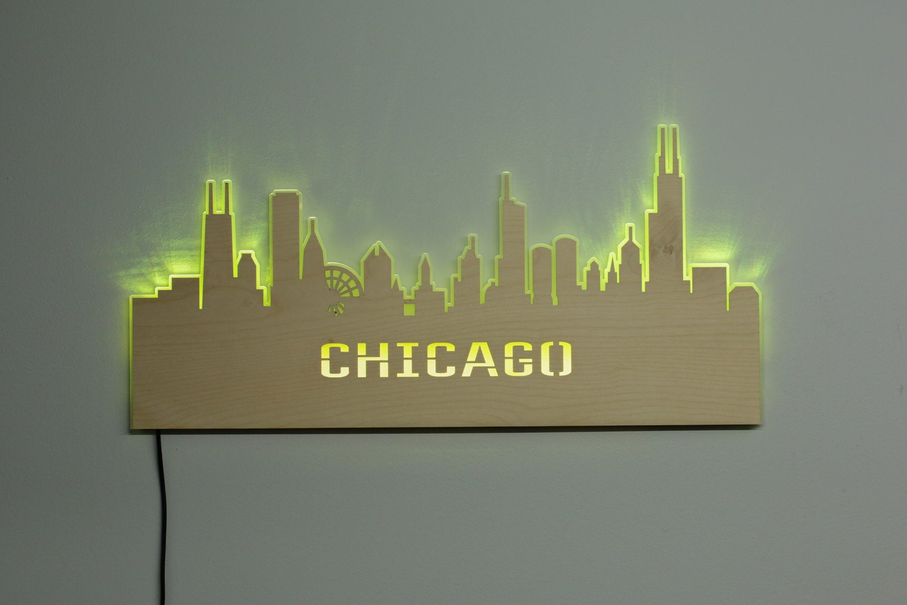 - Laser cut skyline wall piece made of durable wood and acrylic sign materials