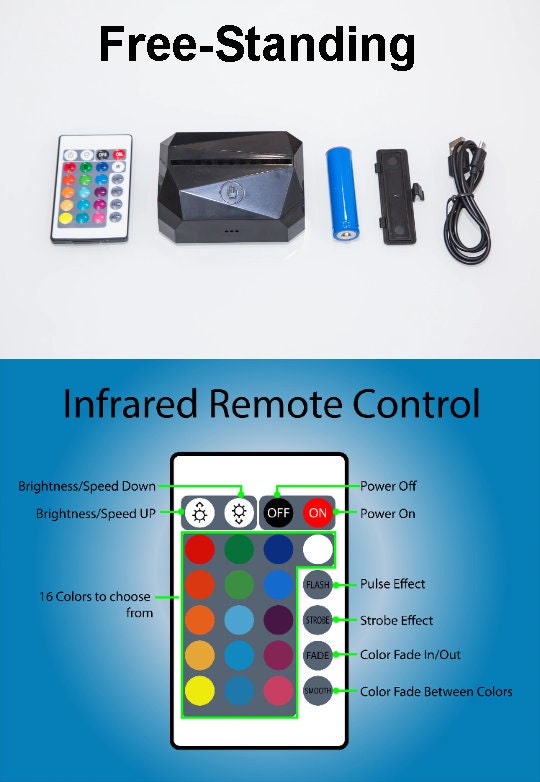 - USB powered night light with included cable and wireless remote control