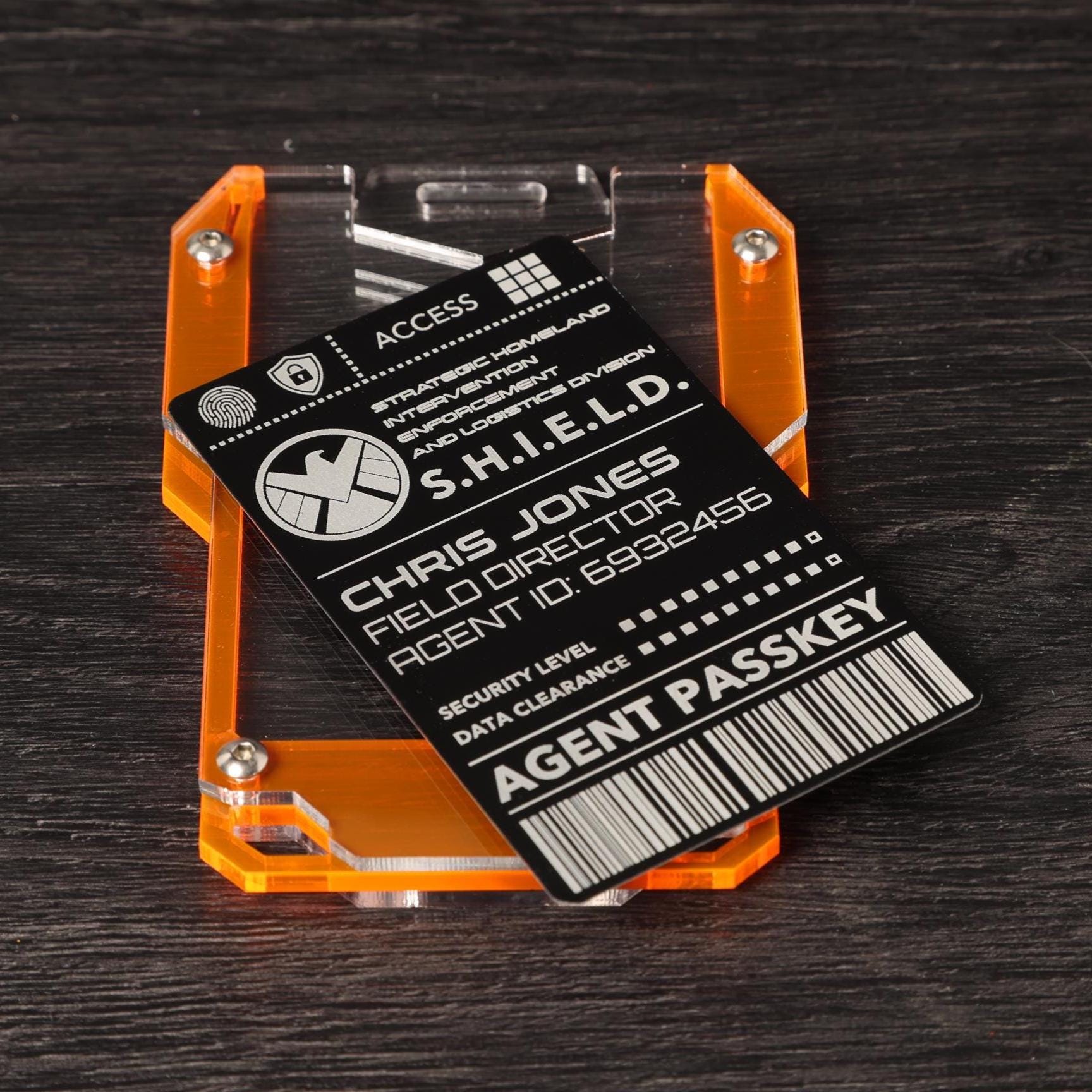 - Durable acrylic badge construction with etched or printed sci-fi ID card designs