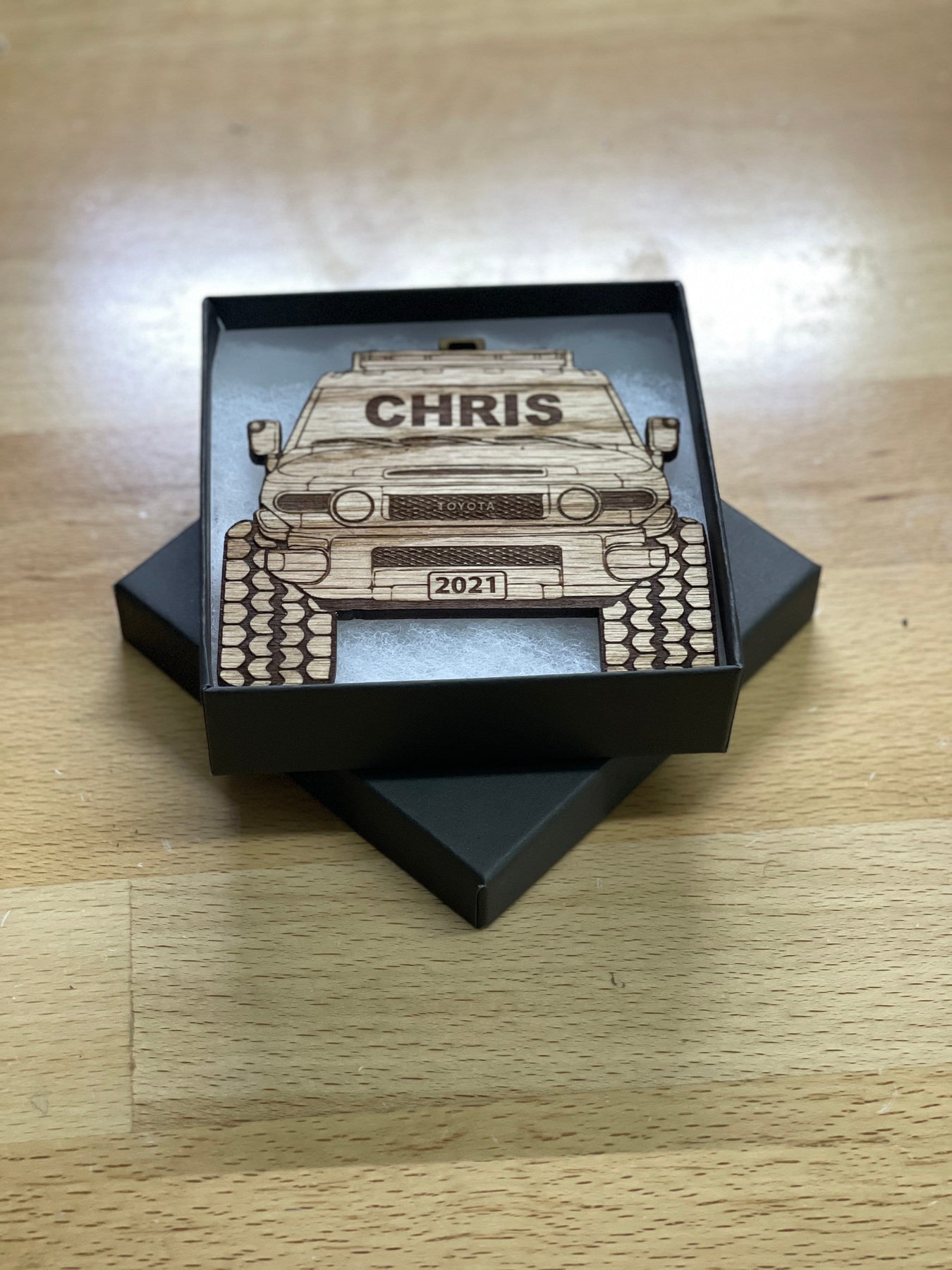 The FJ Christmas Ornament - 4x4 Christmas Ornament is a beautifully crafted decoration designed to enhance your holiday celebrations with a festive tree charm that stands out. This 4x4 christmas ornament features precision laser engraving, ensuring every detail is crisp and clear, making it a perfect custom Christmas decor piece for your home or as a holiday keepsake gift. Made from premium materials, this ornament delivers lasting beauty and charm to your Christmas tree.