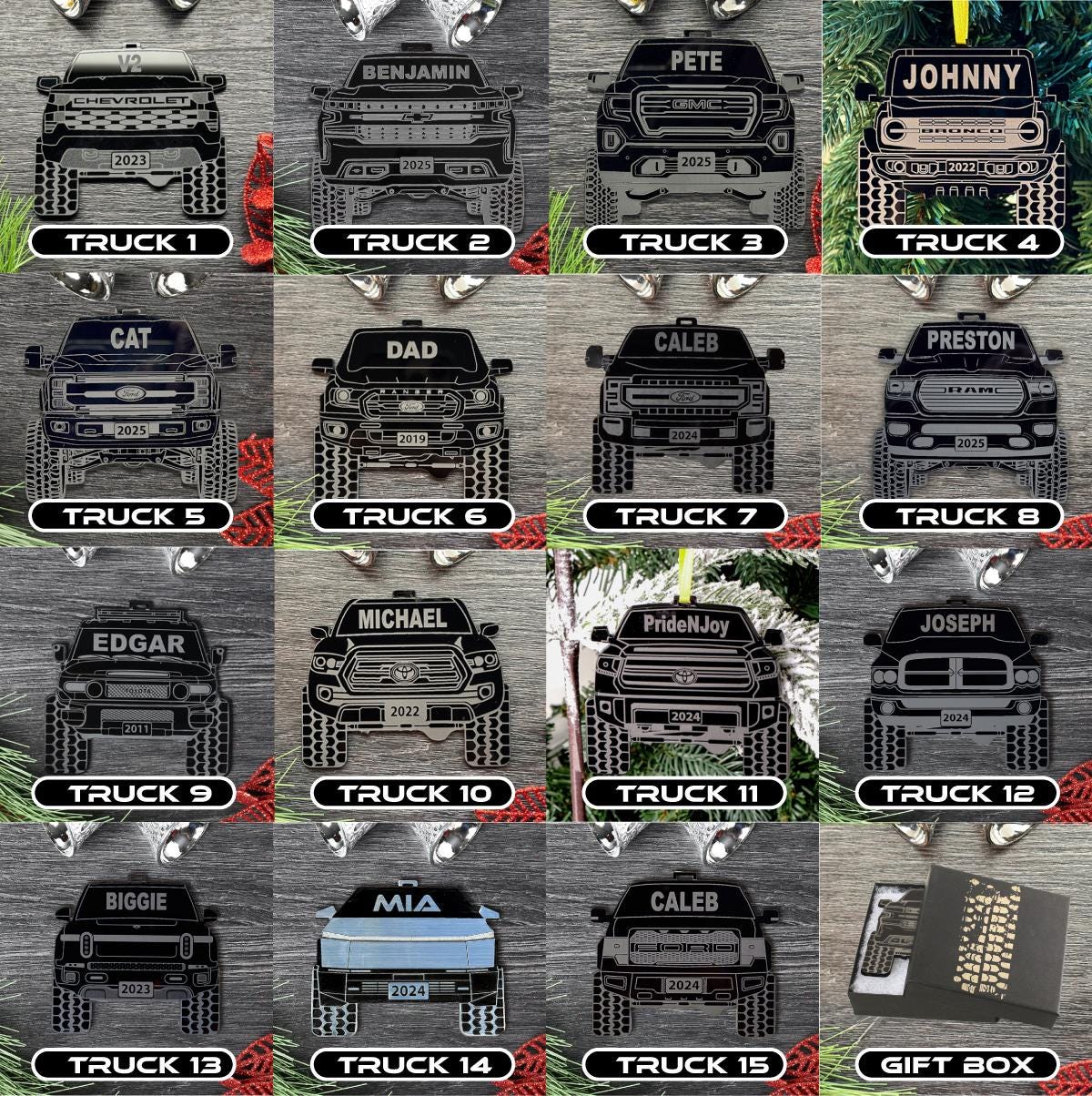 Ordering is simple: select your desired truck model from the dropdown menu and enter your personalization details in the provided box. Add your chosen windshield text (up to 15 characters) and license plate text (date or year) to create a one-of-a-kind keepsake. Celebrate the spirit of the season with this miniature acrylic truck ornament that combines craftsmanship, technology, and heartfelt customization into one memorable holiday decoration.