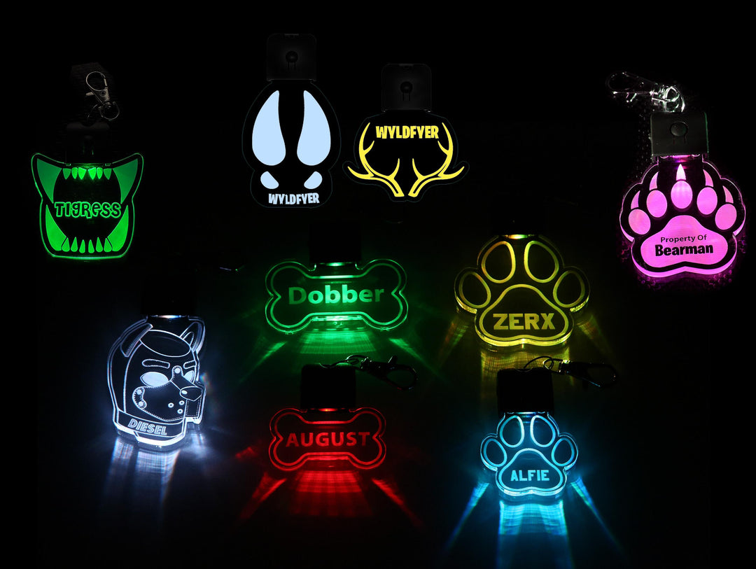 Human Pup Keychain - LED Light Up Dog Tag with Color Changing Acrylic Name Tag
