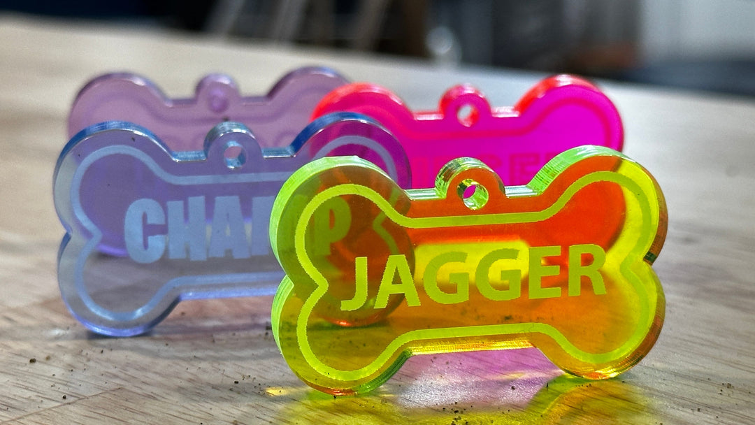 Human Pup Necklace - Personalized Fluorescent Bone Tag | Acrylic Name Tag Keychain