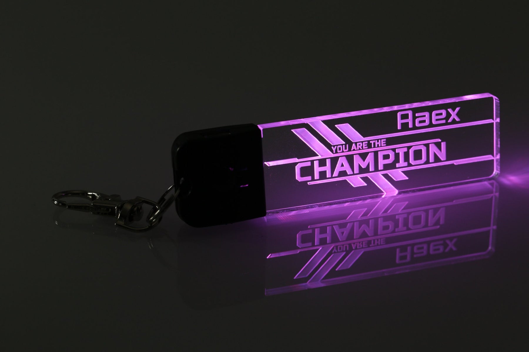 - Personalized keychain with "Legends you are the champion" design for unique gamer identity
