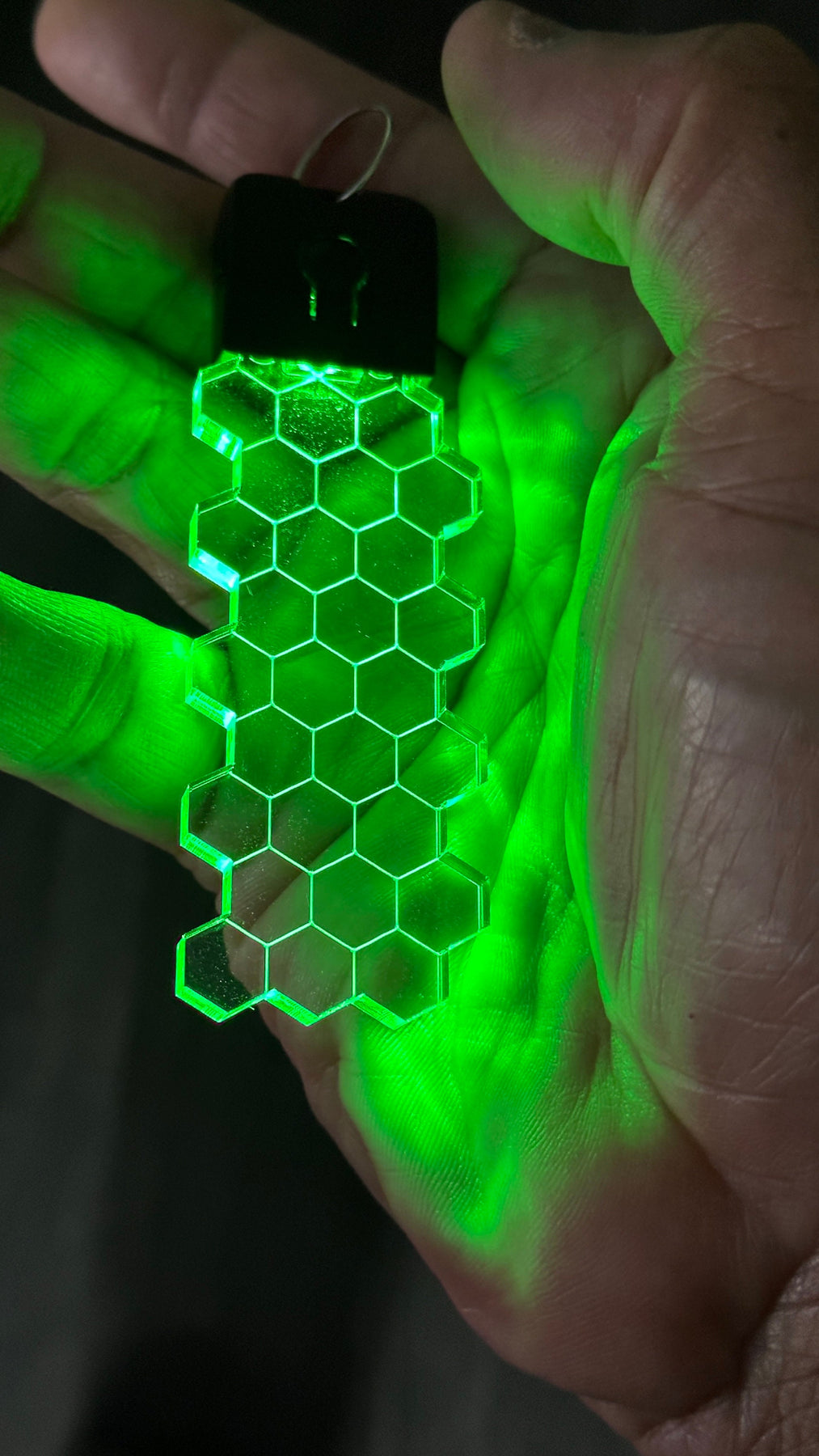 Enhance your gear with this glowing key ring that doubles as a practical accessory and eye-catching statement piece. Whether used as a backpack zipper pull or a unique stocker stuffer, this acrylic keychain pendant delivers both durability and dazzling illumination.