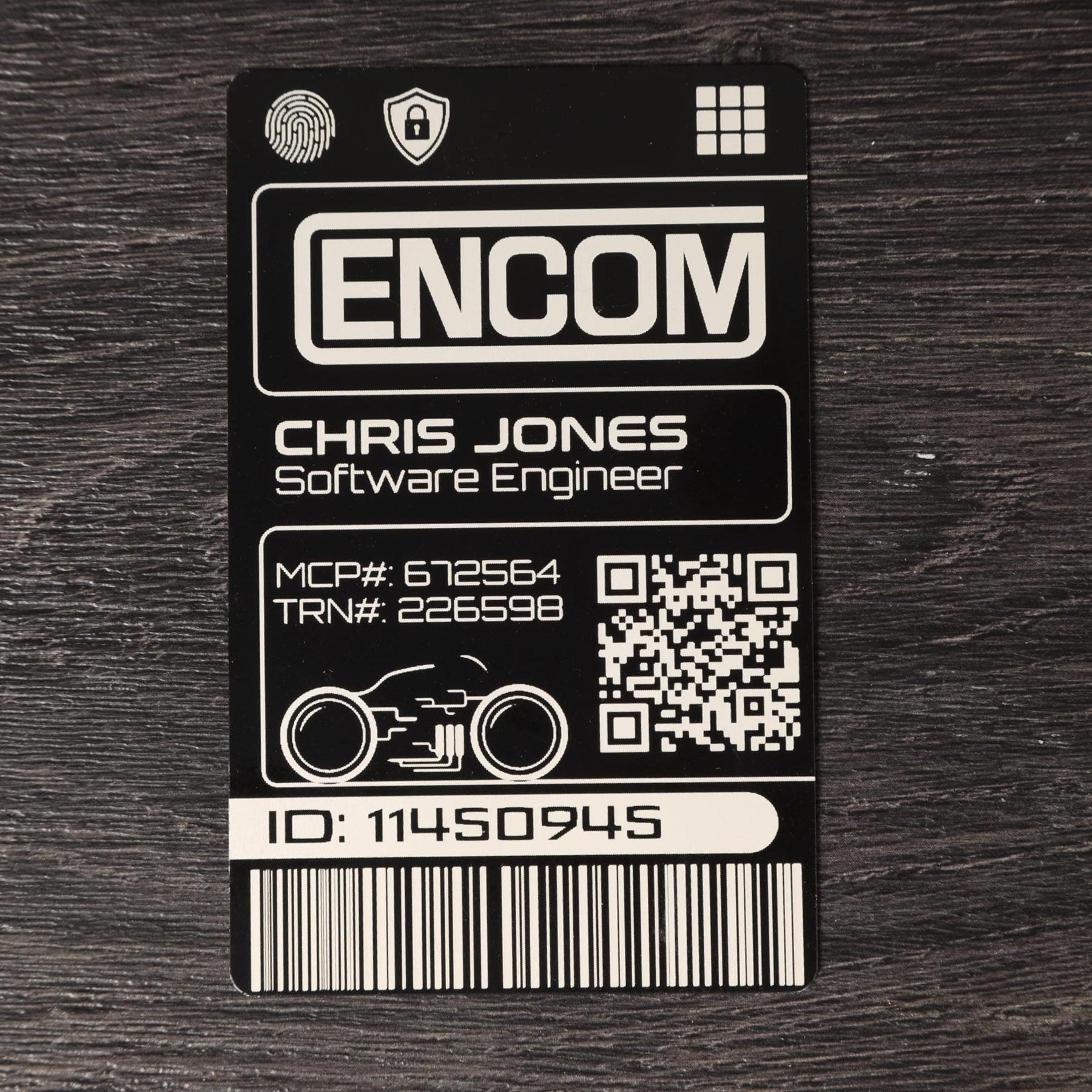 Elevate your cosplay or fandom display with this expertly crafted Encom Light Cycle ID card. Combining precise engineering with personalized touches, it’s the ultimate durable aluminum card prop that captures the spirit of the cyber world while delivering lasting quality and style.