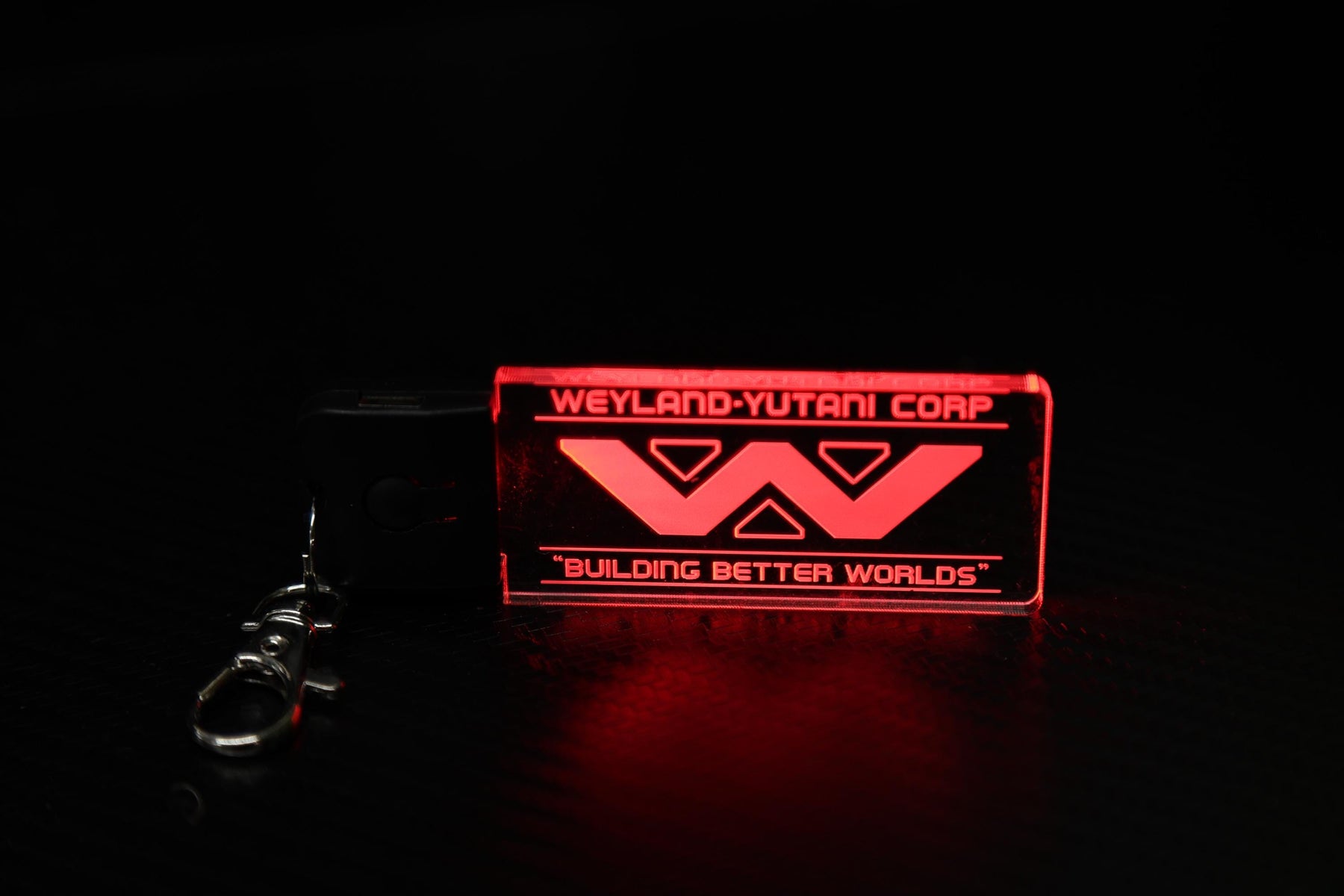 The LED illuminated keychain is a must-have accessory for Alien fans and cosplay enthusiasts, delivering vibrant colors and reliable performance to enhance your gear. This LED Illuminated Weyland Yutani Keychain features a compact 1.2" x 3" acrylic plate that lights up with seven vivid colors, including Red, Green, Blue, Yellow, Teal, Pink, and White. With easy button control, you can switch between steady light, fading light mode, and flashing light mode to match your style or event atmosphere. Designed as a rechargeable LED charm, it offers up to 4.5 hours of continuous use on a single charge and comes with a convenient USB charging cord for quick power-ups.