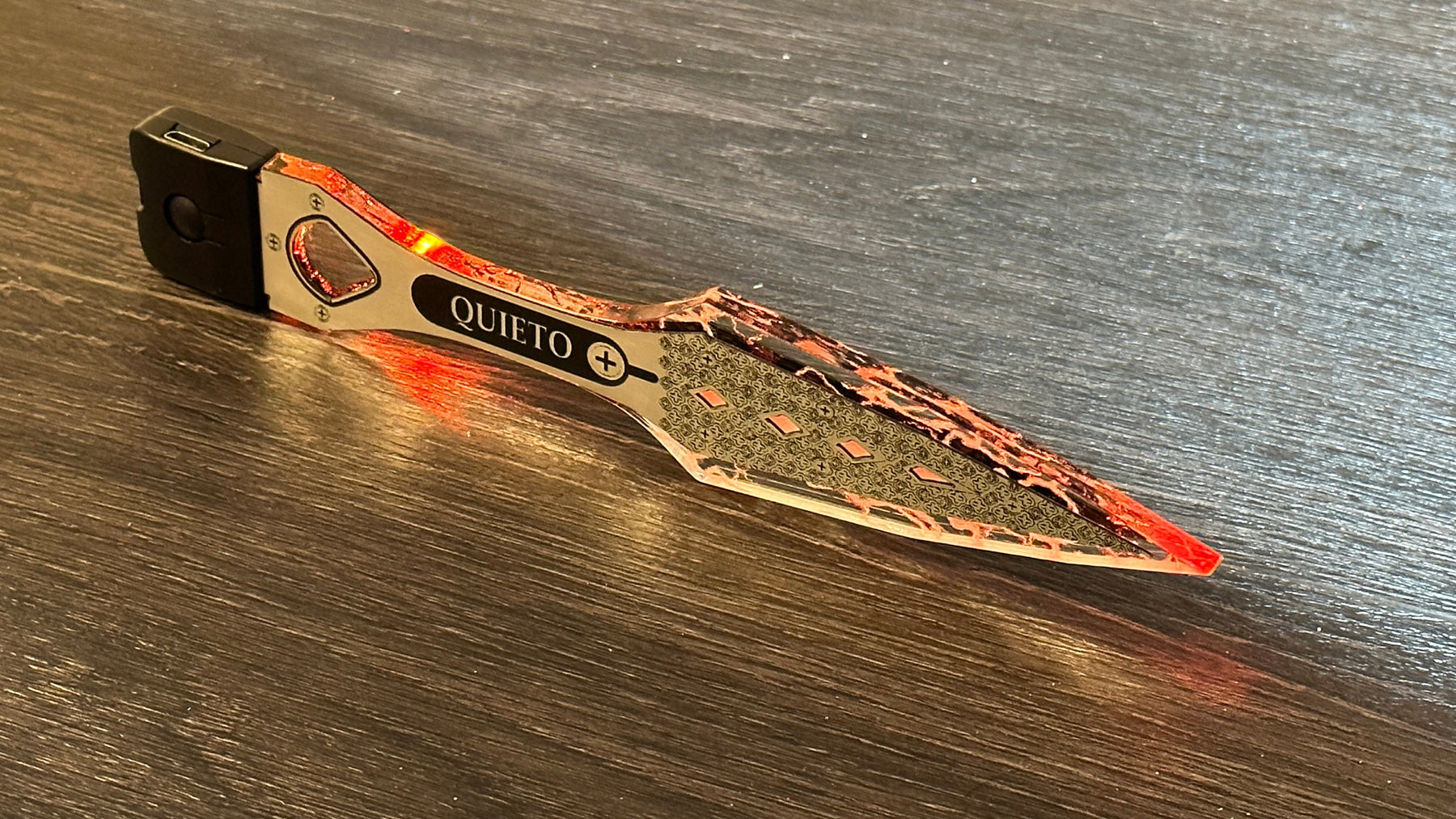 - Rechargeable LED dagger with USB charging cord for eco-friendly power