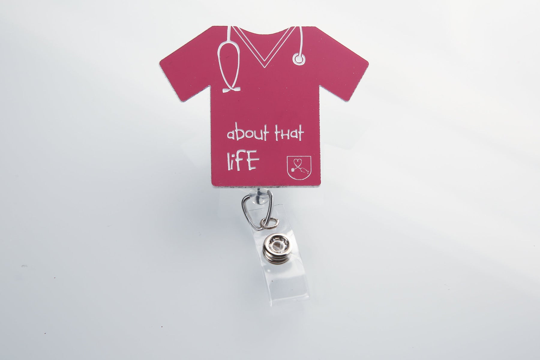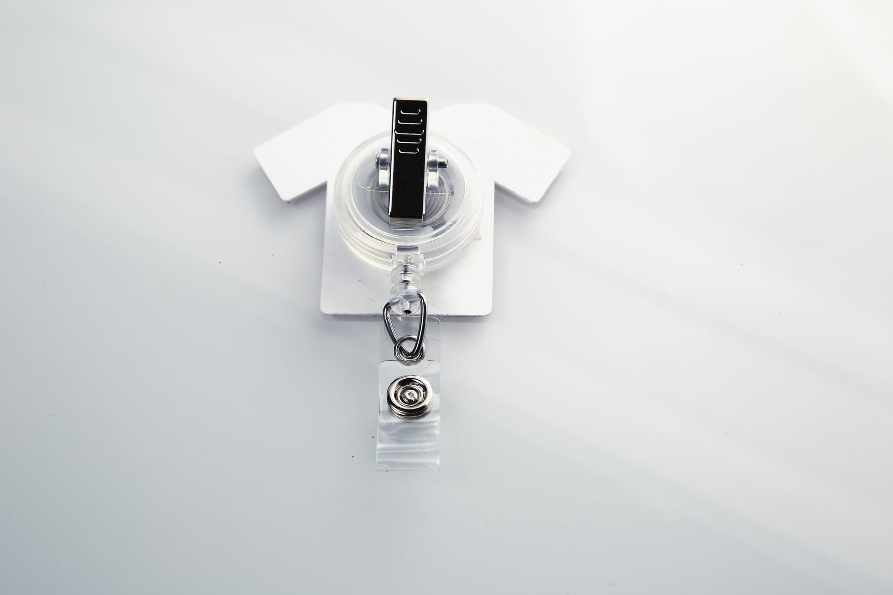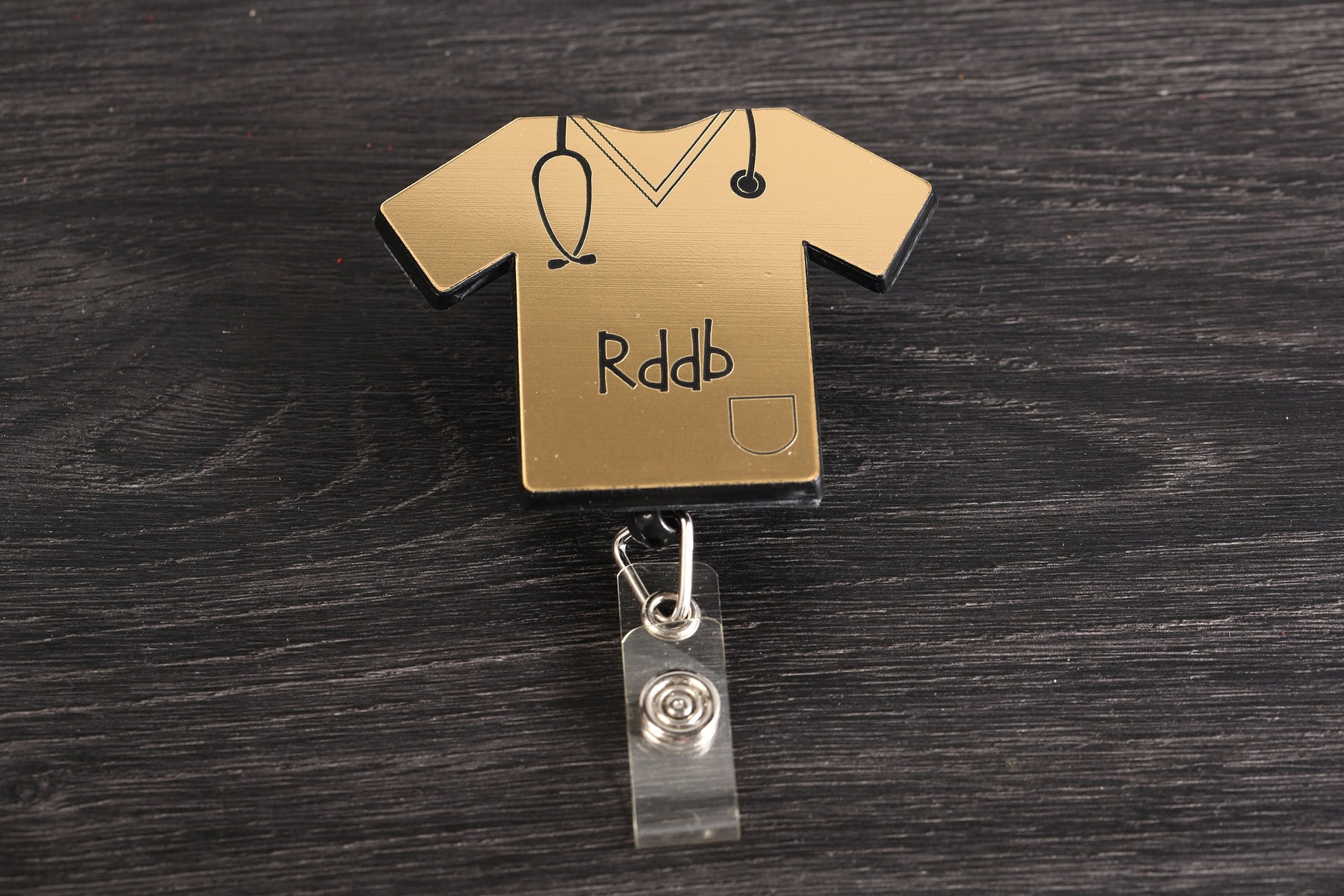 This personalized badge reel is the perfect accessory for any medical professional needing a reliable and stylish way to display their ID. Designed as a scrub top badge reel, it offers a clear, retractable cord that extends up to 34 inches, allowing easy access to hospital ID holders during busy shifts. Crafted from durable acrylic, this custom nurse badge features precise engraving for your chosen text, ensuring your badge stands out in any medical office setting. Whether you are a doctor, nurse, dental hygienist, or X-ray technician, this engraved badge reel combines functionality with a professional look to keep your ID secure and visible.