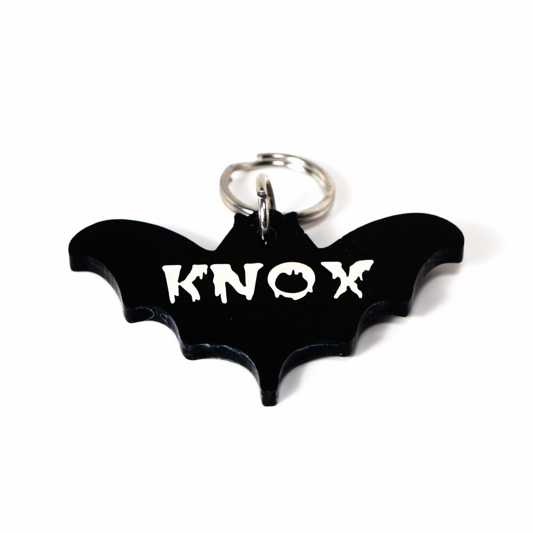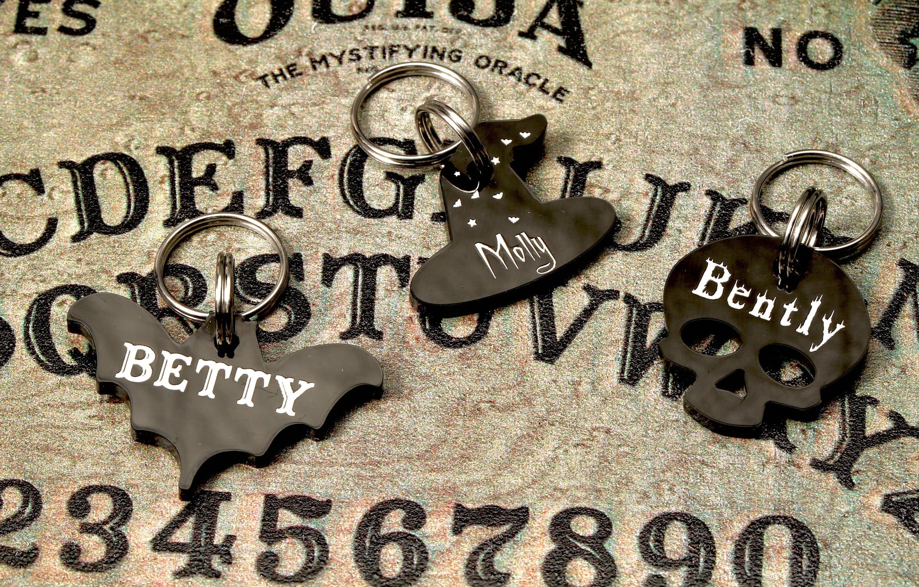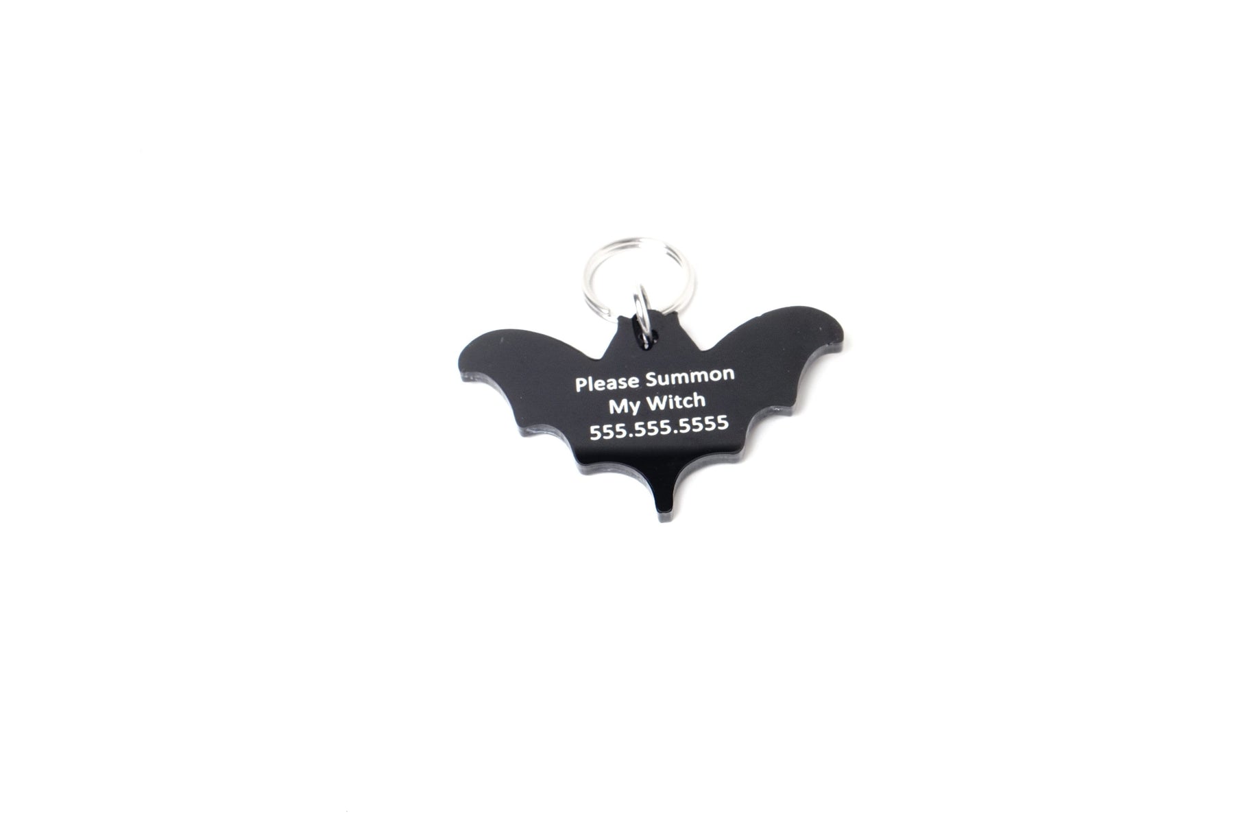 - Personalized bat pet tag with gothic and spooky cat tags design