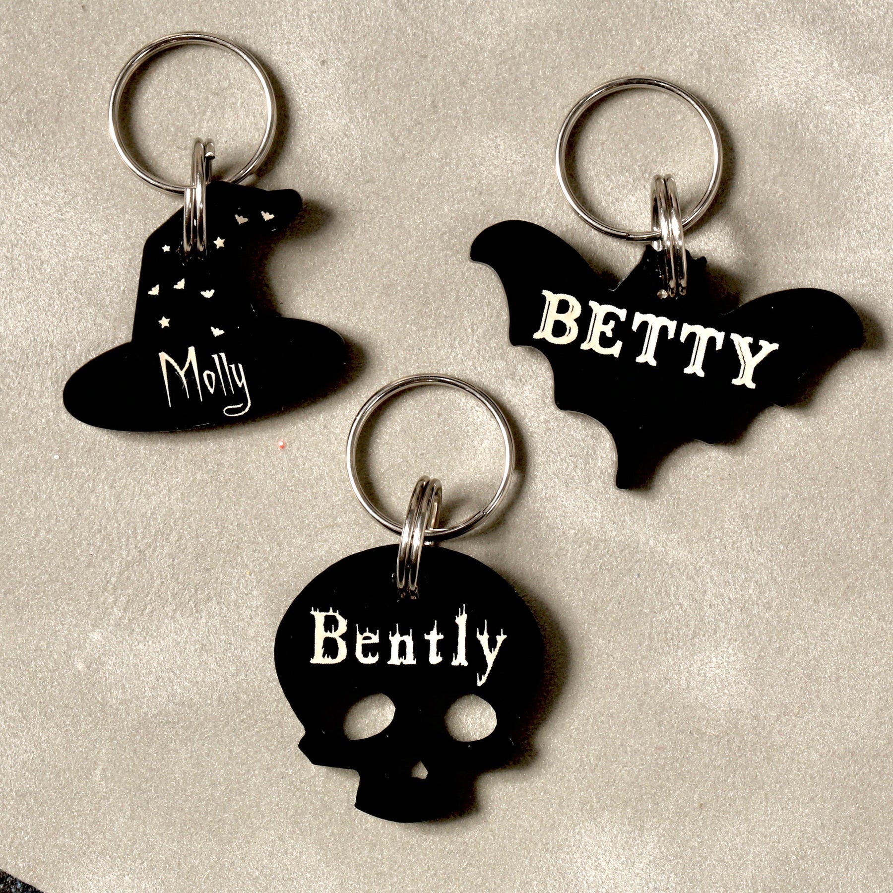Add this bat shaped tag to your cart today and give your cat a distinctive gothic pet tags accessory that combines safety with seasonal charm.