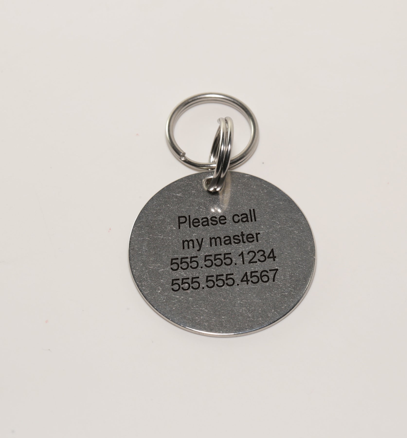 - Custom engraved tag with front and back personalization for clear identification