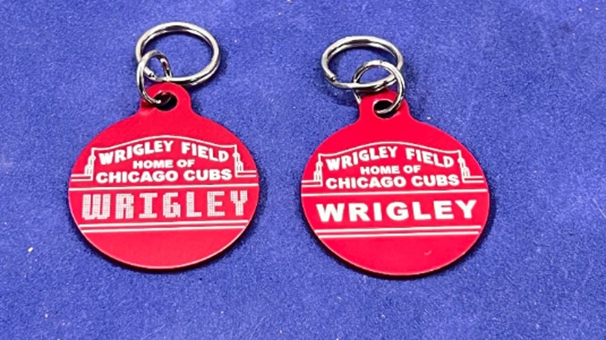 This Wrigley Field pet tag combines function with fandom, delivering a stylish way to keep your pet safe while celebrating your favorite baseball team. Our aluminum dog tags are tested to withstand daily wear, offering peace of mind that your custom dog tag will not only look great but also endure outdoor conditions without fading or breaking. Order now to give your pet a unique ID that’s as spirited as they are.