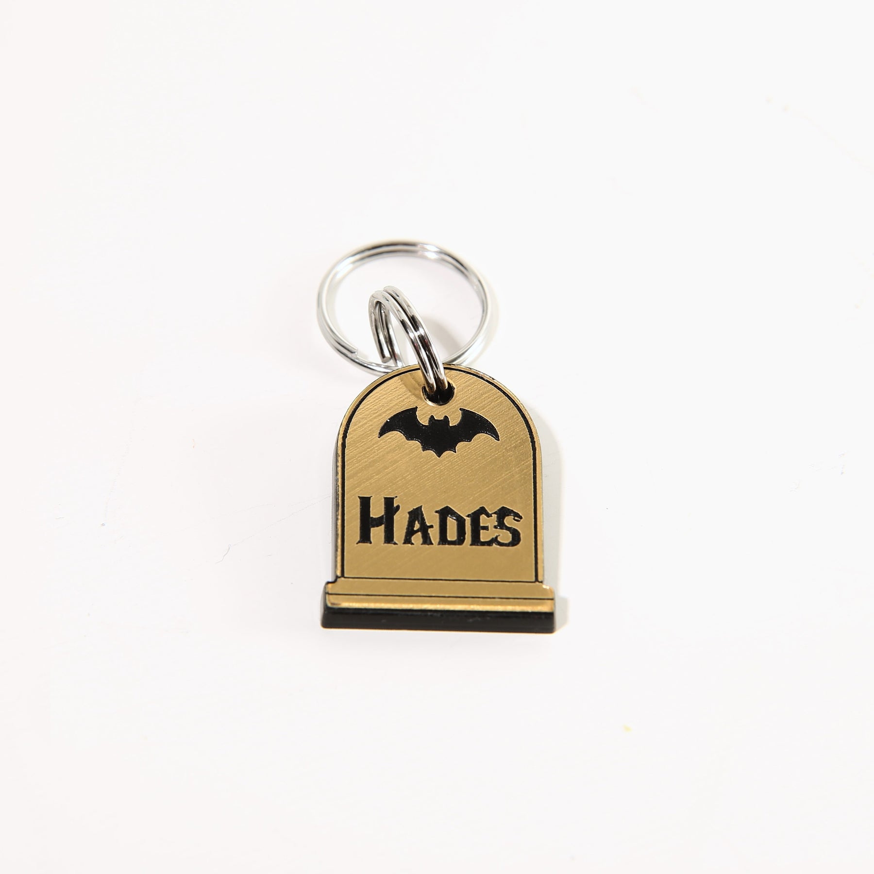 Available in three sizes, this tombstone pet tag fits pets of all sizes: Large (1.5" x 1.3"), Medium (1.2" x 1"), and Small (.94" x 1.06"). Each tag includes a stainless steel ring for secure attachment to collars. The black backing enhances the engraved text's visibility, making it easy for anyone to read your pet’s information at a glance.